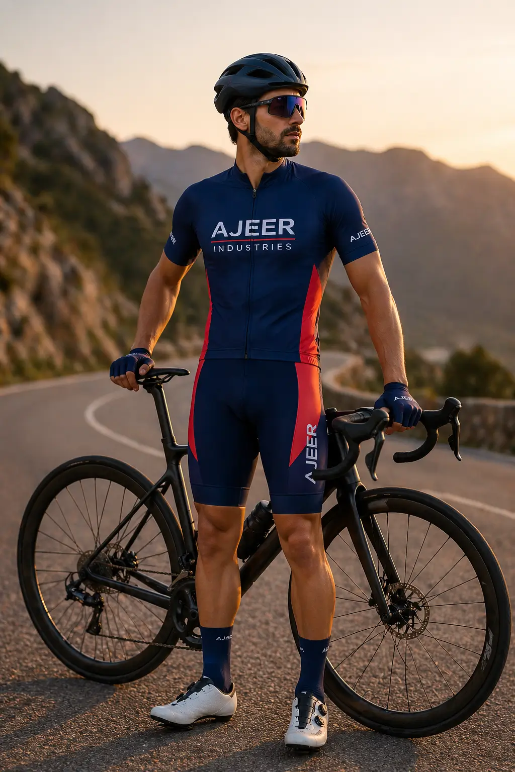 Aerodynamic race-fit jerseys and bib shorts built for speed, long-distance comfort, and peloton performance.